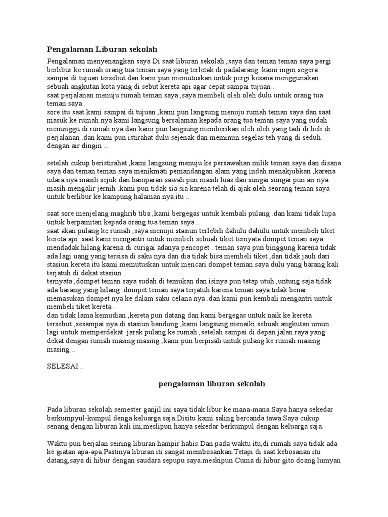 Pengalaman Liburan Sekolah Pdf